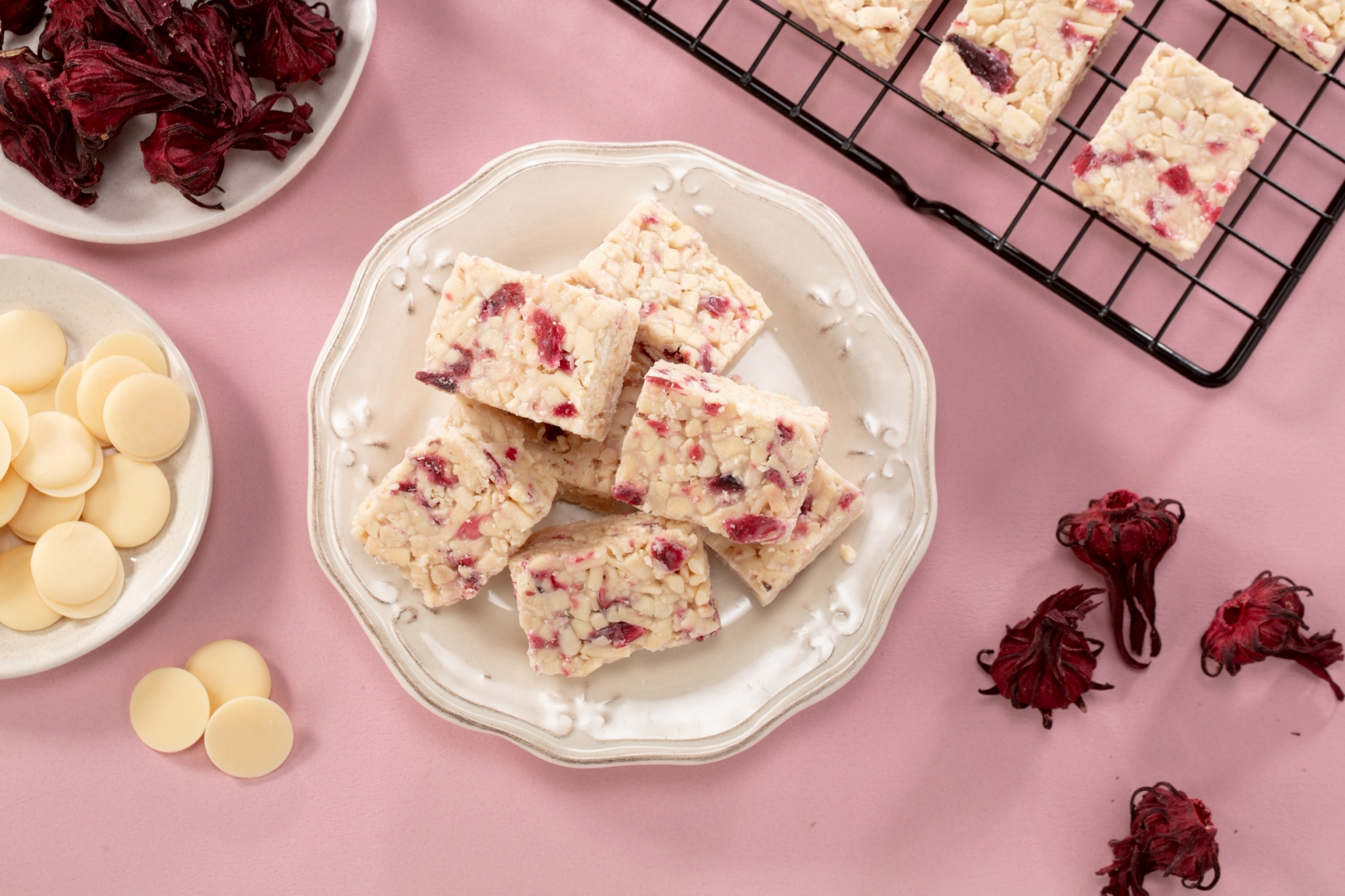 以傳統沙其馬為基底,結合台灣在地洛神花的酸香與優格的清爽乳韻,創造出清新不膩口的全新風味。