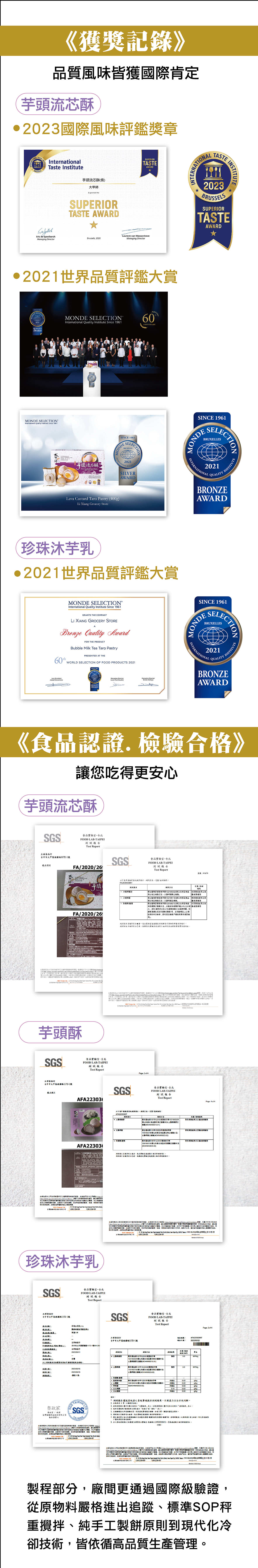 內容物:芋頭流芯酥×3, 珍珠沐芋乳×3, 桂花芋頭酥×3, 芋頭酥×3